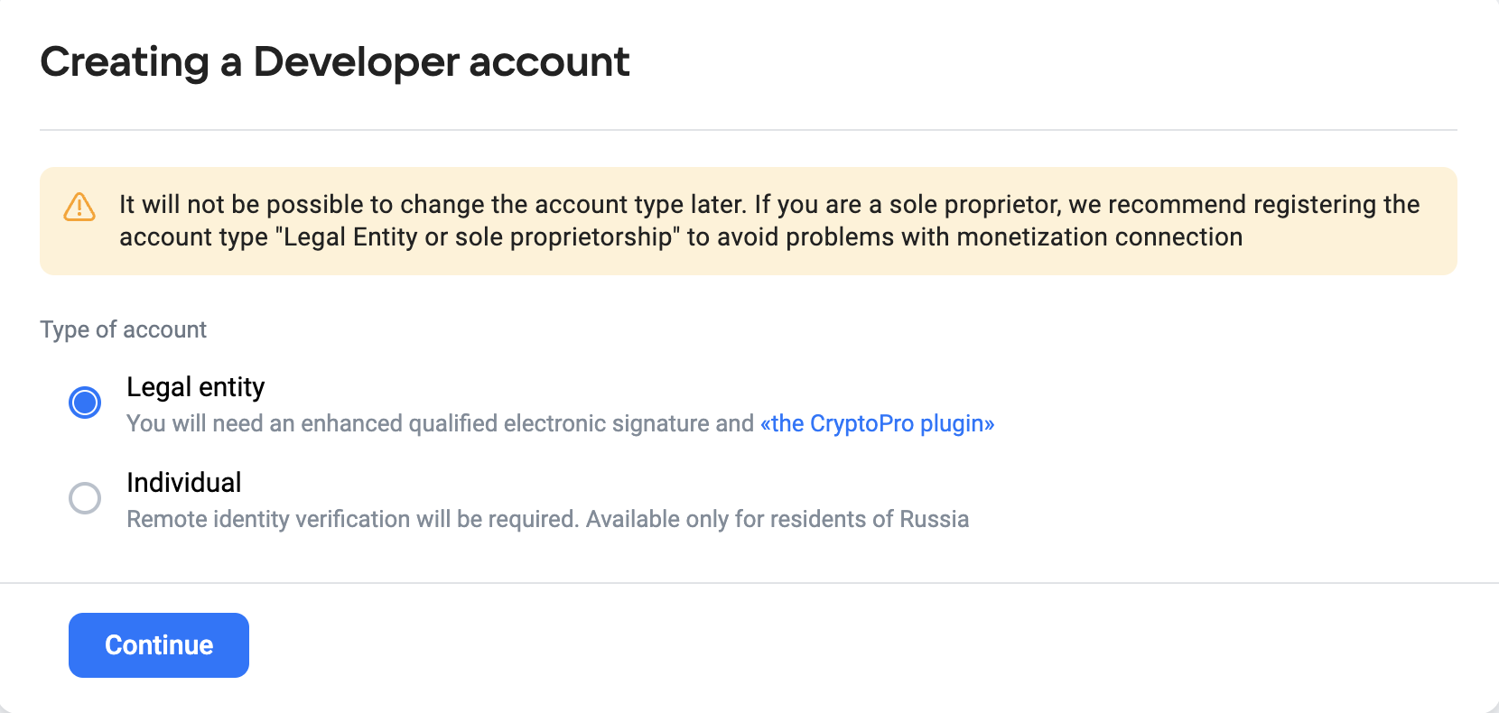 Before siging up for RuStore Console, please read legal documents.