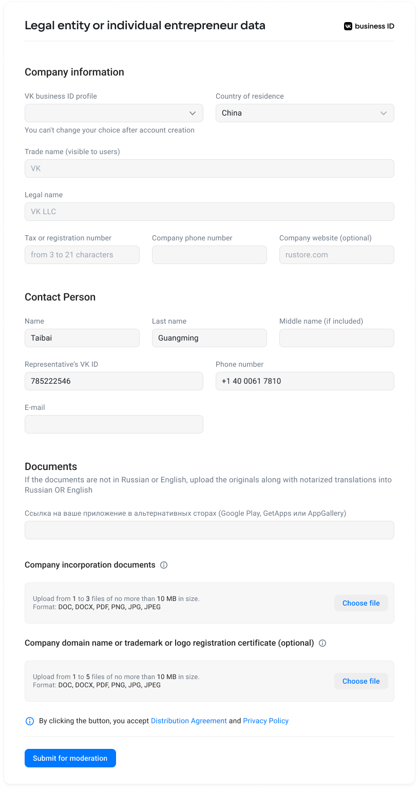 If you have any questions, contact the support service support@rustore.ru (indicate VK ID, full name and TIN in your request).
