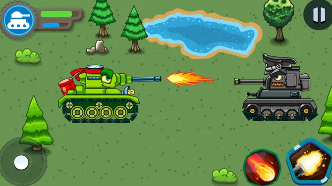 Tank battle - Присоединяйтесь к лучшим армейским танкам второй мировой, чтобы сражаться с другими врагами, или создайте свой собственный военный танк, чтобы сражаться с врагами! Примите участие в масштабных военных действиях, чтобы почувствовать себя участником глобальной войны танковых игр. Если вам нравится играть в лучшие игры танковых войн, и вы представляете себе боевую игру с модернизируемыми оружейными машинами, то это ваша игра. Танковые бои - это лучшая игра для мальчиков. Выбирайте свой танк и улучшайте его. У каждого танка есть своя уникальная способность, которая поможет вам выиграть бой! Танки: ● В игре есть следующие модели танков: Т-34, КВ 2, ИС 2, ИС 3, Т26, M4, КВ44, Churchill и много других. ● Каждый танк имеет свою способность: пулемет, пробивной снаряд, удар молнии, фаербол, ракета и много других Бои: ● Битва танков происходит на разных локациях: поля, пустыня, снег, болота и степи ● В конце каждого уровня находится танк босс, которого необходимо победить Особенности игры: ● Мультяшная битва танков 2д - это захватывающая и увлекательная игра со сложными миссиями про танки. ● Можно назвать данную игру - танки детские. Да, это действительно так, в игре рисовка детская с 2д графикой. ● Если вы любите военные машины и зоны боевых действий, и вам нравится играть в игры с реальными боевыми миссиями, тогда эта игра для вас. ● Она предоставляет вам захватывающие виды острых миссий с танками, военными машинами, роботами - истребителями и многим другим, чтобы держать вас в восторге. ● В этом и заключается прелесть этой игры, так как битва дает реальный вызов и острые ощущения от убийства врагов. ● Вы можете прятаться за укрытиями и зданиями, чтобы спастись от нападения врагов. Бои можно выигравать по разному. ● Игра имеет классную мультяшную графику и звуки, которые обеспечат вам реалистичный подход к игре. ● Tank battle games for boys предлагает вам неограниченное удовольствие, острые бои и захватывающие миссии. ● По мере прохождения миссий вы получаете вознаграждение для модернизации оружия. ● Модернизируйте свой танк стратегически, чтобы сделать его более мощным! ● Чем больше вы закончите миссий, тем больше вы получите вознаграждений в виде монет и драгоценных камней. ● Вы можете покупать мощные танки за игровые монеты и болты. ● В игре много карт, таких как пустыня, ледяная земля, болото и пылающая земля. ● В игре есть магазин, где можно купить все, что нужно герою в следующей битве (драгоценные камни, монеты). ● Играйте в игры танки без интернета. Танчики подойдут как детям так и подросткам. Играйте в игры про танки, улучшайте и откройте все танчики в игре!
