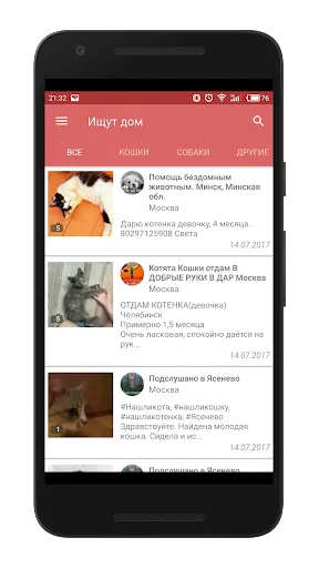 Поиск зверей - это уникальный в своем роде продукт для поиска животных. С его помощью Вы сможете найти потеряшку, приютить, а так же купить кошку, собаку или другое животное. За день в приложении появляются более 1000 бесплатных объявлений что позволяет найти себе питомца на любой вкус и цвет!