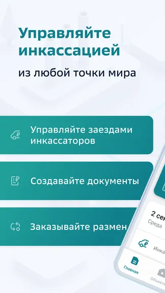 Мобильное приложение «СберИнкассация» - удобное решение для управления заездами по инкассаторским услугам. Доступны функции: - просмотр информации по объектам инкассации - создание заявки на обслуживание по услугам «Инкассация», «Доставка размена» на 9 календарных дней вперед согласно графику заездов - просмотр, отмена и повтор ранее созданных заявок - работа с электронной накладной - быстрый заказ и отмена инкассации (по кнопке «Вход без регистрации») Воспользоваться мобильным приложением могут клиенты, имеющие договор на кассово-инкассаторское обслуживание, заключенный с ПАО Сбербанк, и СберБизнес.